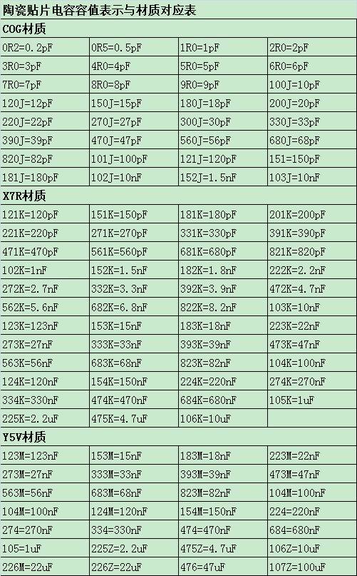 常用的貼片電容規(guī)格對(duì)照表